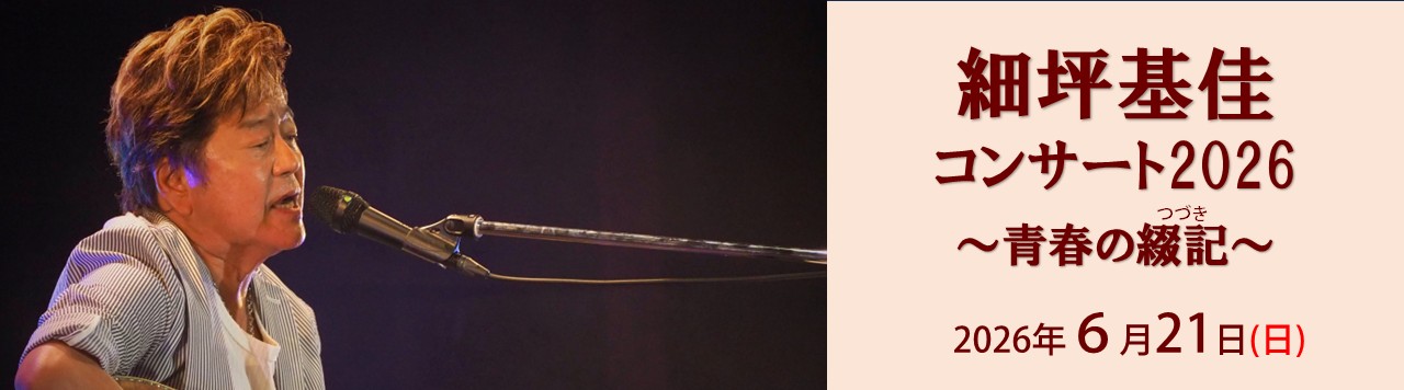 6/21「細坪基佳コンサート2026 ~青春の綴記~」開催 NEW